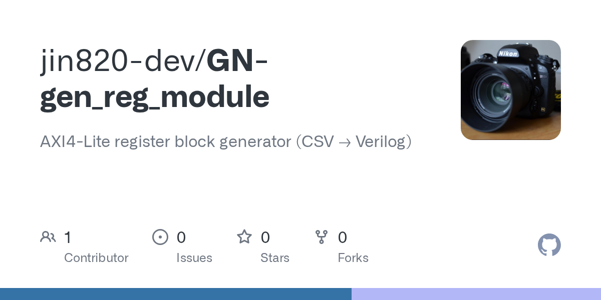 GN-gen_reg_module は、AXI4-Lite対応の制御レジスタモジュールを自動生成するためのPythonツールです。
