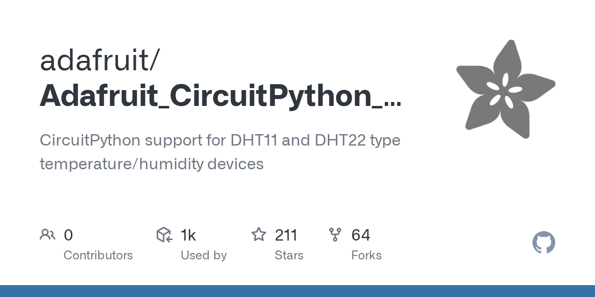 Adafruit社が提供する「CuicuitPython_DHT」ライブラリを利用して室温&湿度を取得します。