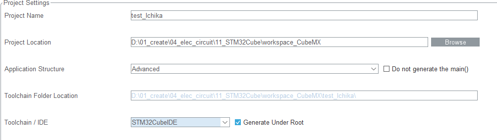- CubeMXで新規プロジェクト作成