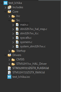 CubeMXが生成する Core/Drivers は「生成物」なので、自分のコードをプロジェクト直下に分離して管理する方針にしました。