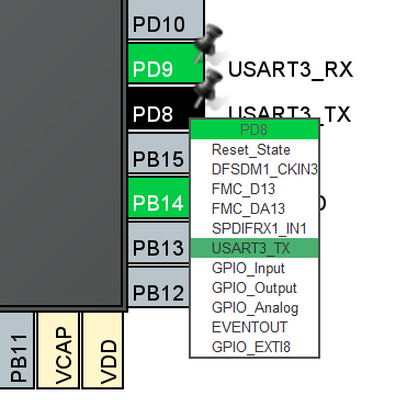 MCUの PD8, PD9 をUSART3に設定します。