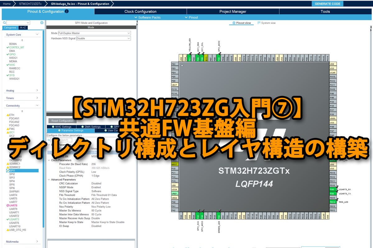 そこで本記事では、STM32H723ZGを対象に、全プロジェクトで共通利用できるファームウェア基盤を構築します。目的は「今だけ動く構成」ではなく、長期保守可能かつ再利用可能な設計を最初から定義することです。