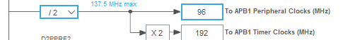 TIM6はAPB1 Timer Clockで動作しており、本記事の設定では192MHzで動作しています。このクロックはCubeMXのClock Configuration画面で確認できます。